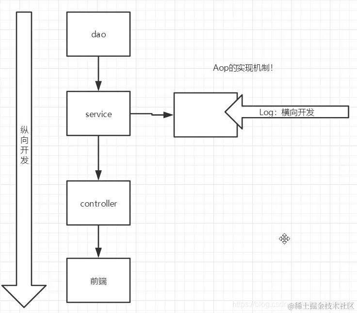 - AOP 就是横向编程,在改变原有代码的情况下修改业务代码,增加需求。