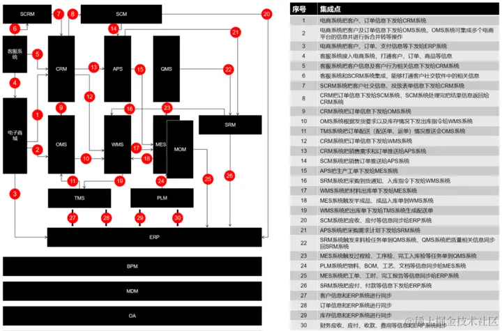 在企业的数字化建设中,系统之间的集成关系往往比上述所表达的要复杂得多。然而,这张图尽可能地表达了所有可能发生集成关系的系统。