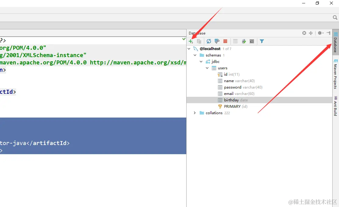 - 连接数据库,代表数据库