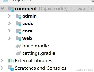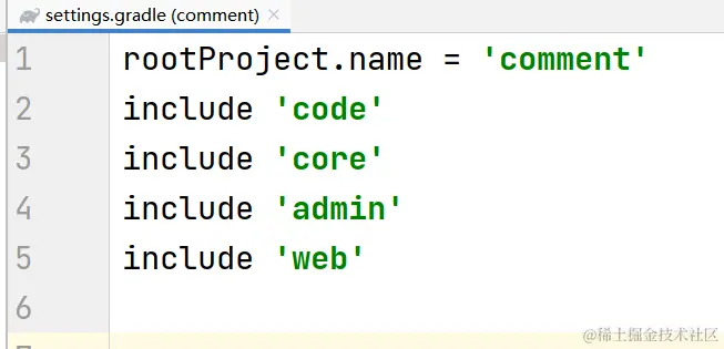 在 comment 的 setting.gradle 文件中可以看到模块的信息