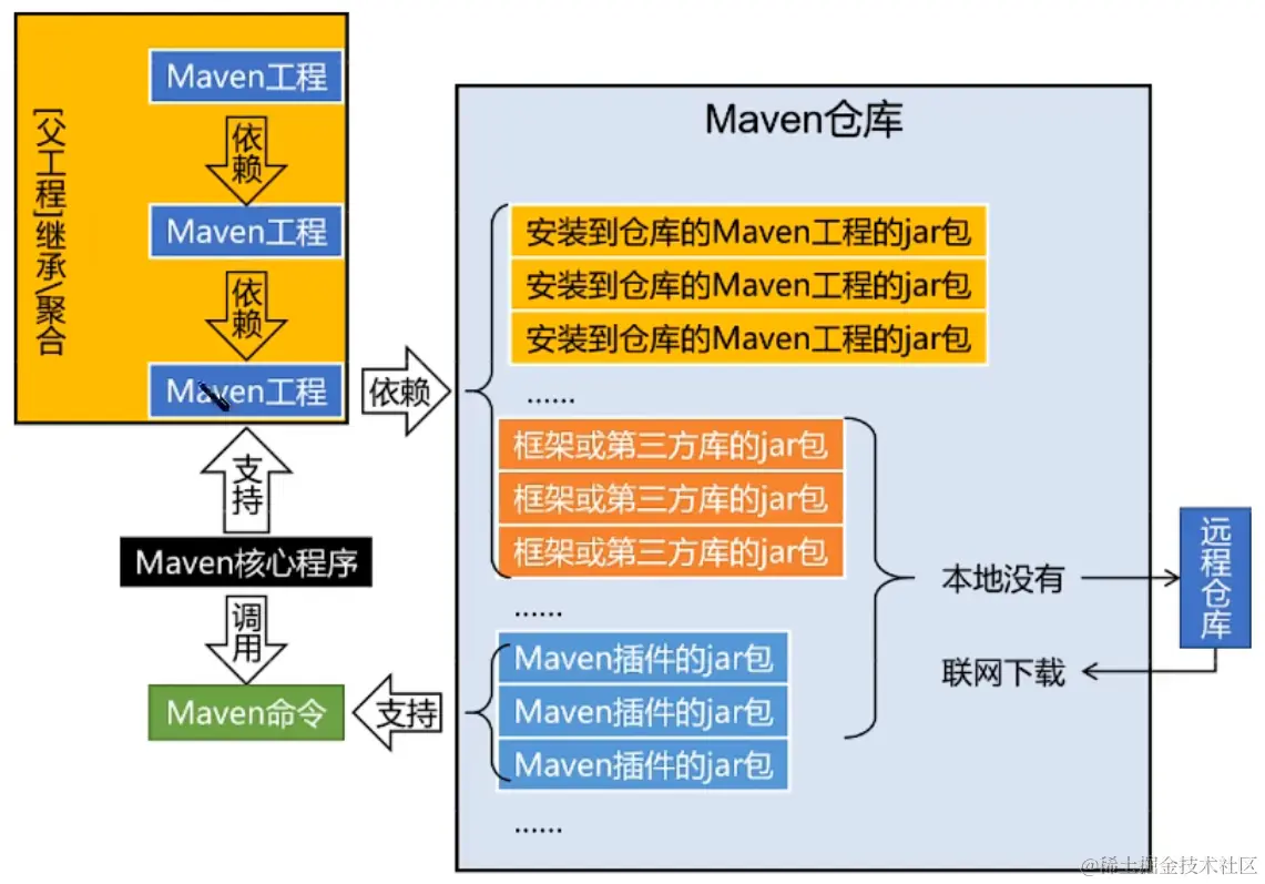 - jar 包的下载:使用 Maven 之后,jar 包会从规范的远程仓库下载到本地