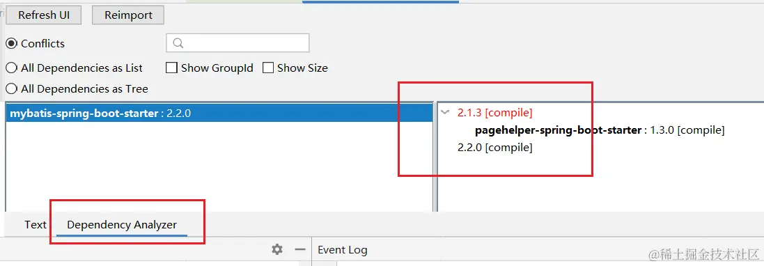 - jar 包之间的冲突:通过对依赖的配置进行调整,让某些 jar 包不会被导入