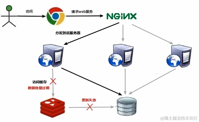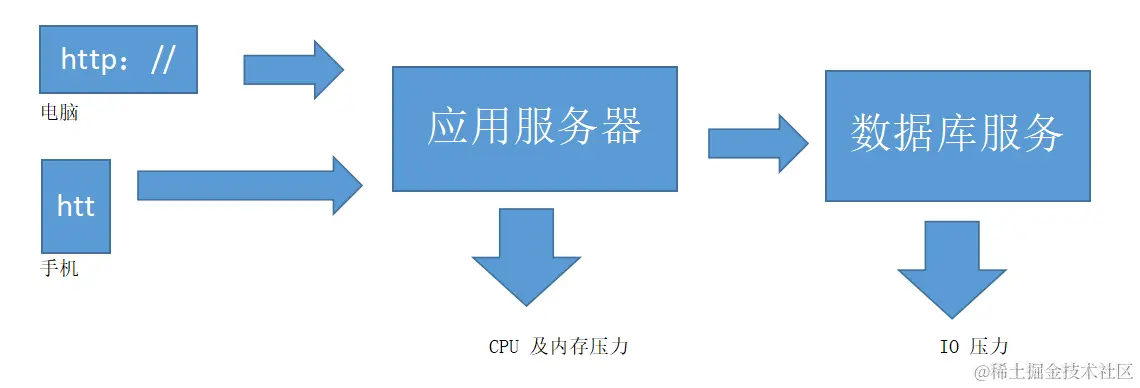 用户通过 url 访问 Web 服务器,然后 Web 服务器访问数据库服务,不能承受住大量的访问。