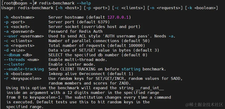命令:redis-benchmark --help查看帮助