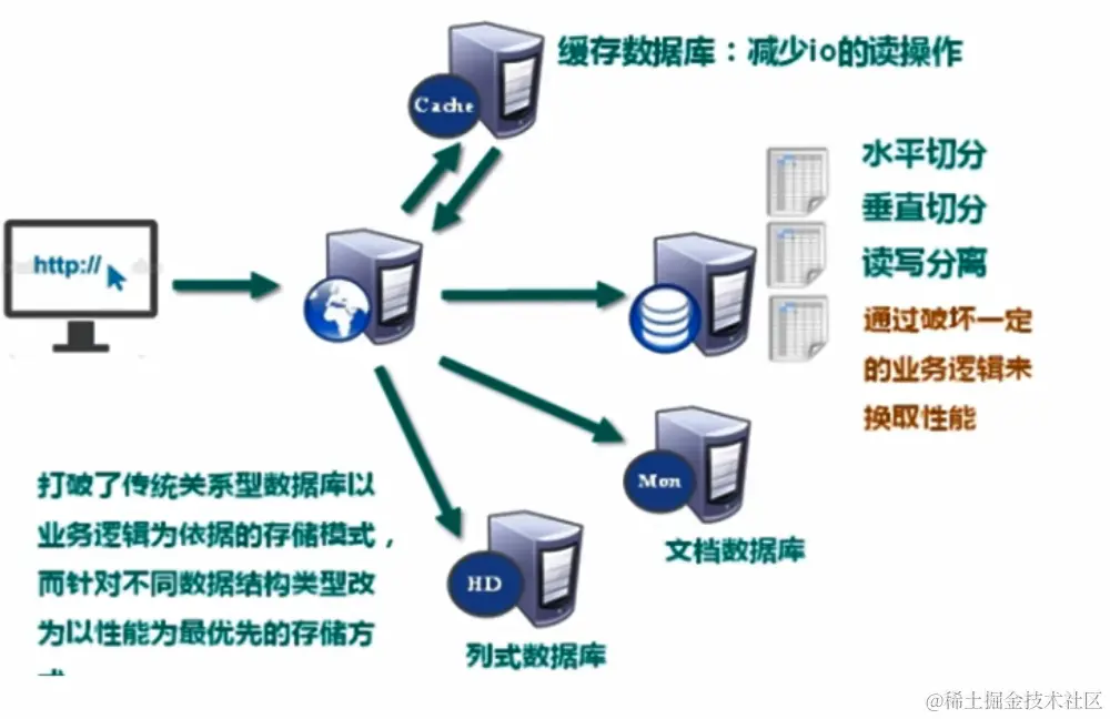 随着 Web2.0 的时代的到来,用户访问量大幅度提升,同时产生了大量的用户数据。加上后来的智能移动设备的普及,所有的互联网平台都面临了巨大的性能挑战。