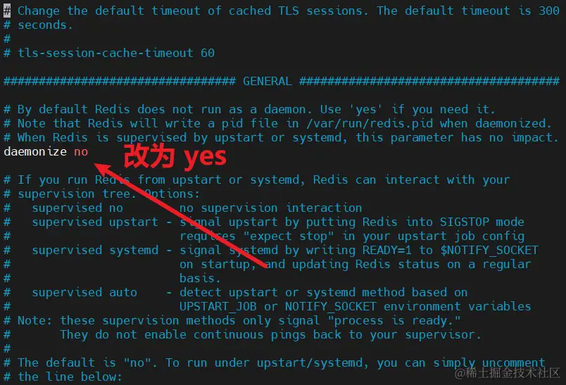 在配置文件中设置 daemonize no 改为 yes,让服务在后台启动,注意:修改的是 etc 目录下的配置文件