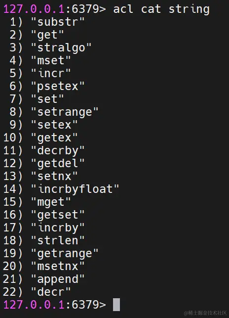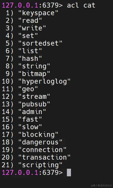 acl cat命令- 查看添加权限指令类别(具体的命令有那些)