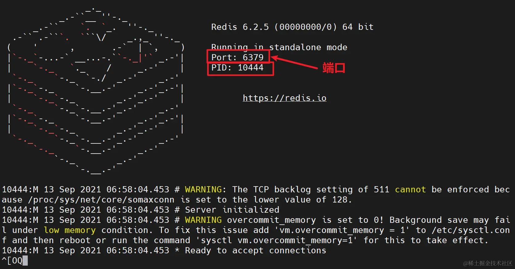 执行命令 redis-server是,出现以下内容表示启动成功,这种启动方式不能退出窗口,所以不推荐使用