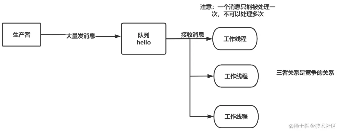 RabbitMQ 是一个消息中间件:它接受并转发消息,可以把它当作一个快递站点,当要发送一个包裹时,你可以把包裹放到快递站,快递员最终会把你的快递送到收件人哪里,按照这种逻辑 RabbitMQ 是一个快递站,一个快递员帮你传递快件。RabbitMQ 与快递站的主要区别在于,它不处理快件而是接收,存储和转发消息数据。