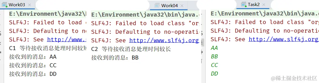 消费与接收具有相似的含义。消费者大多时候是一个等待接收消息的程序。注意:消费者和消息中间件很多时候并不在同一台机器上,同一个应用程序既可以是生产者又是可以是消费者。