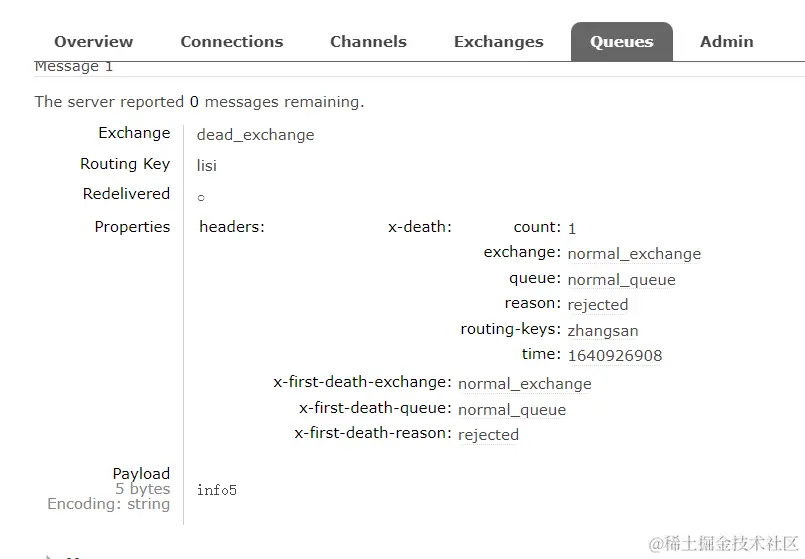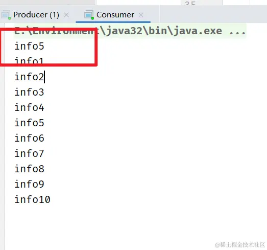 因为设置了 info5 的优先级,测试结果 info5 是第一个被消费的
