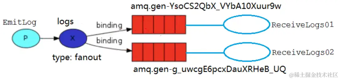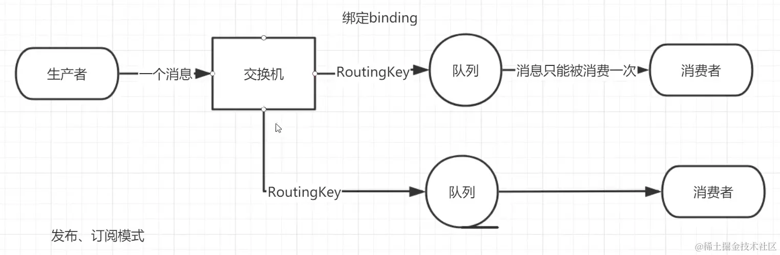 队列是 RabbitMQ 内部使用的一种数据结构,尽管消息流经 RabbitMQ 和应用程序,但它们只能存储在队列中。队列仅受到主机的内存和磁盘限制的约束,本质上是一个大的消息缓冲区。许多生产者可以将消息发送到一个队列,许多消费者可以尝试一个队列接收数据。这就是我们使用队列的方式