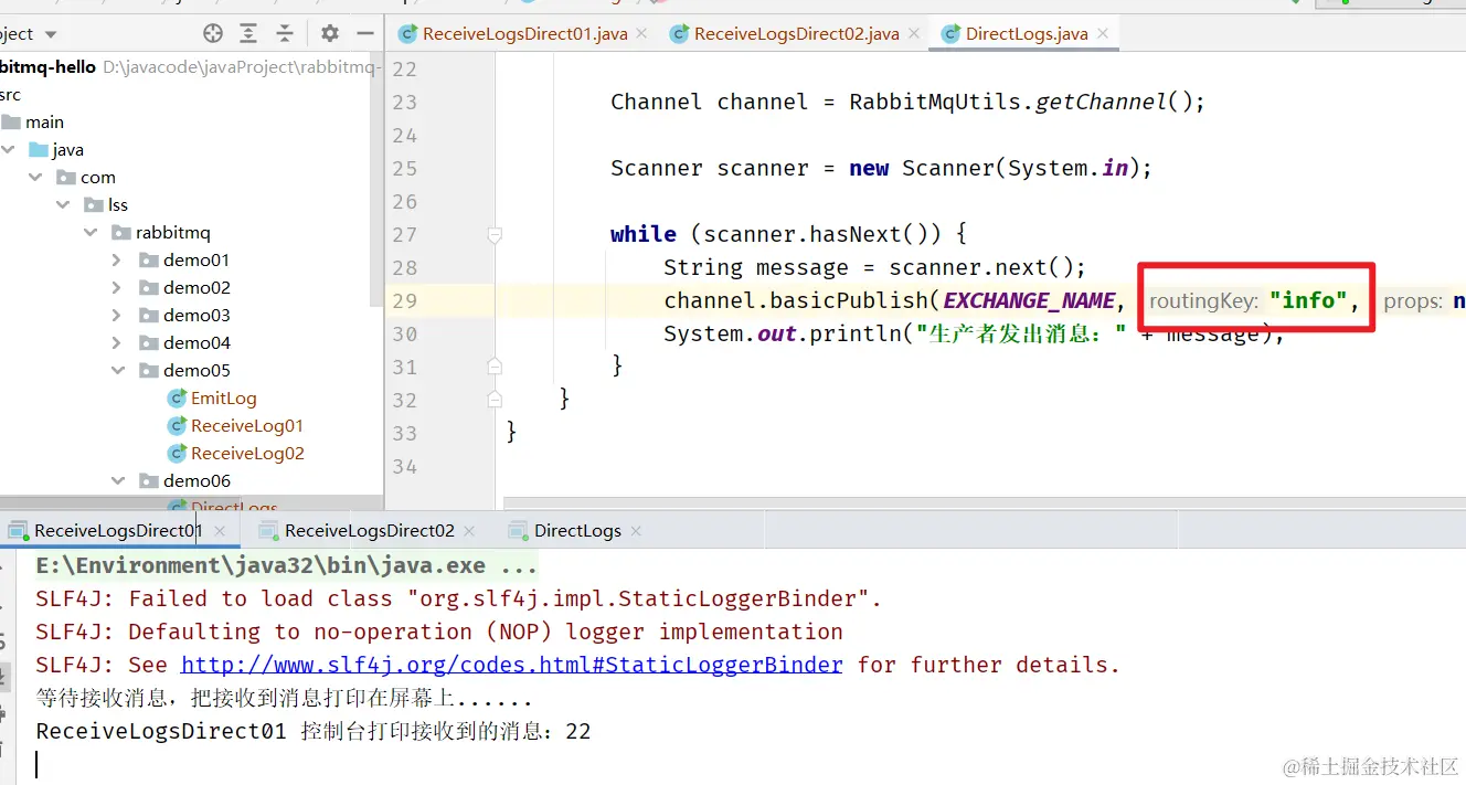 channel.basicPublish("", QUEUE_NAME,null,message.getBytes());