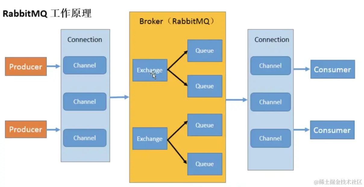 - Connection:publisher / consumer 和 broker 之间的 TCP 连接