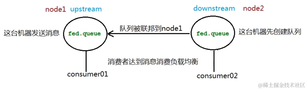 联邦队列可以在多个 Broker 节点(或者集群)之间为单个队列提供负载均衡的功能,一个联邦队列可以连接一个或者多个上游队列(upstream queue),并从这些上游队列中获取消息以满足本地消费者消费消息的需求。
