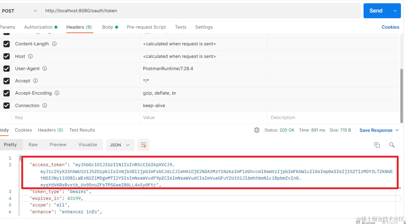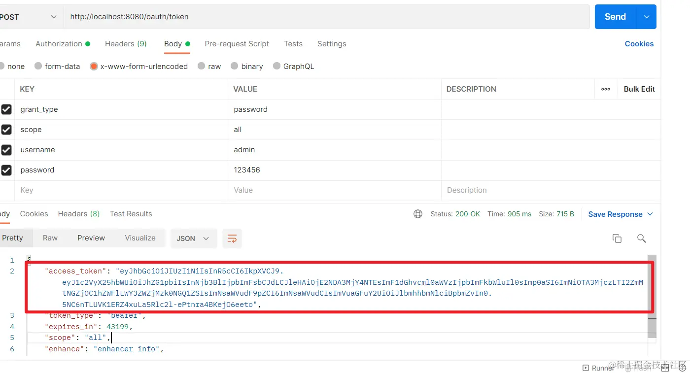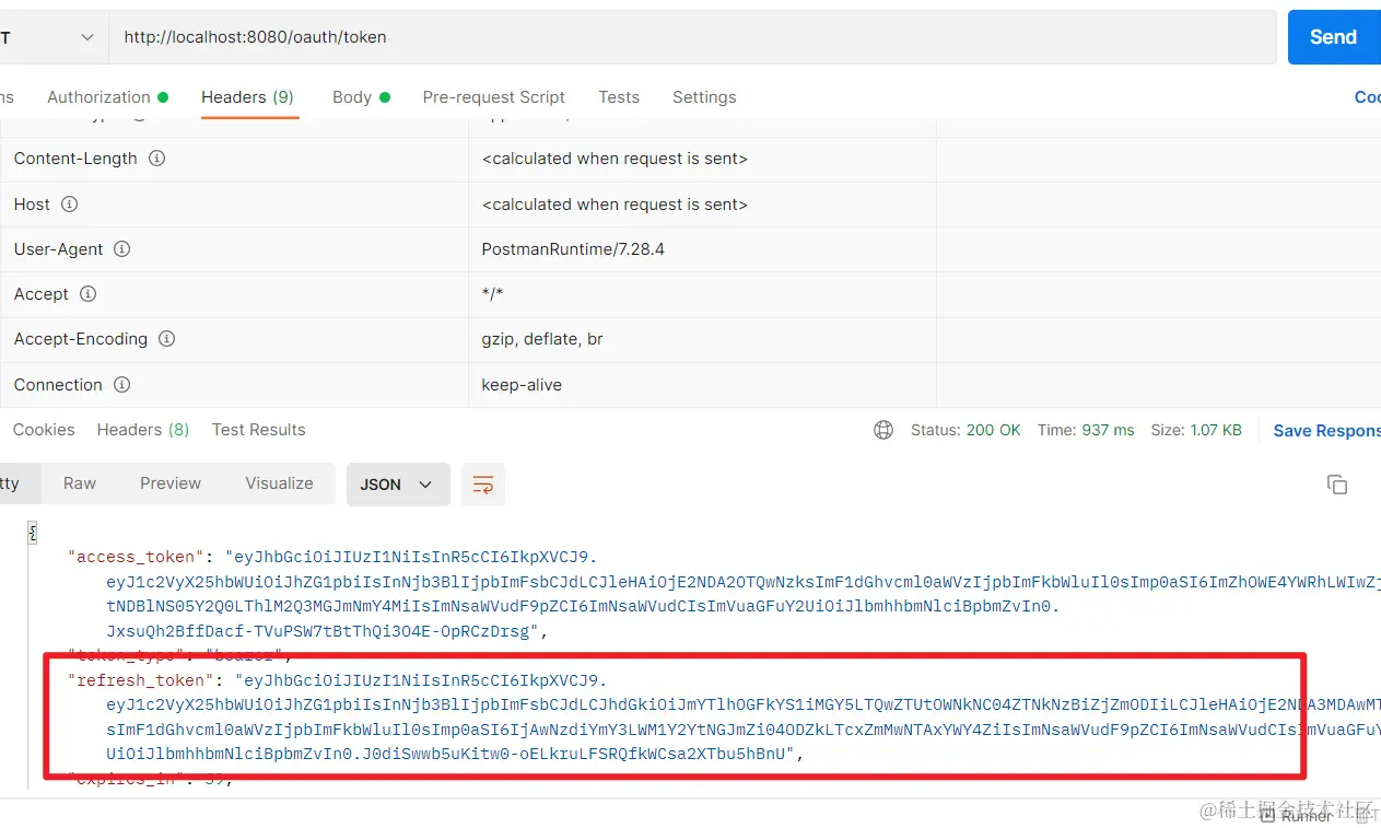 运行测试的时候,当我们请求令牌的时候就会多一个刷新令牌的键值对