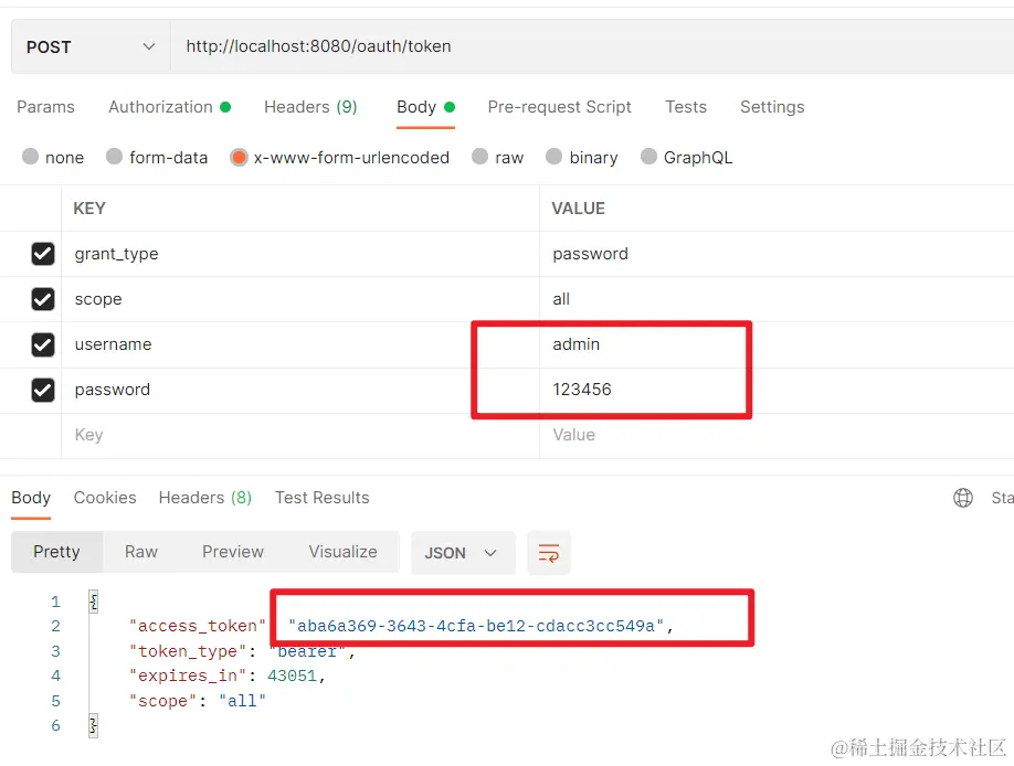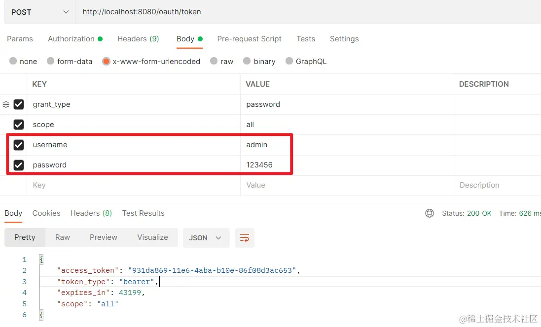 这里的用户名密码是认证服务器 UserService 中配置的 UserDetails