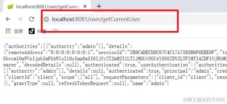 账号密码输入正确认证通过后又会跳转到 http://localhost:8081/user/getCurrentUser,单点登录成功