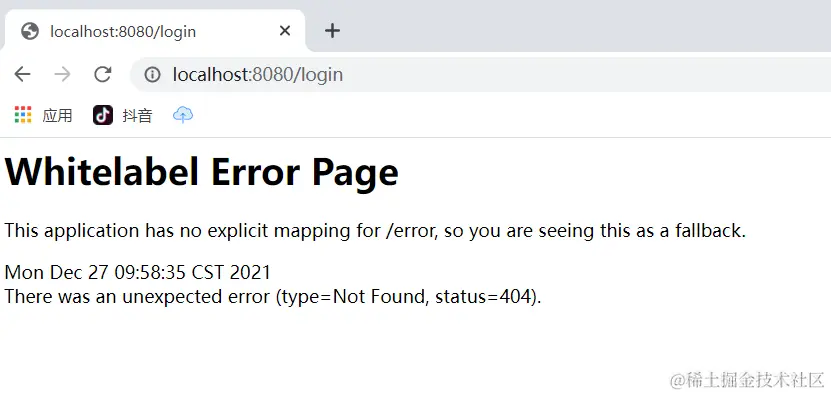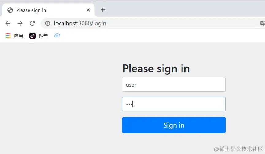 启动后访问登录请求会发现,首先进入的是一个登录页面,这个登录页面是 Spring Security 内置的一个登录页面。这个登录账号默认是 user,密码在控制台有输出(每一次都不一样)。当这个判断我们的用户名和密码正确的时候才进入到我们自定义的登录页面。