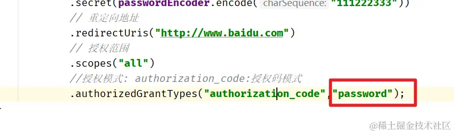 .authorizedGrantTypes("authorization_code","password","refresh_token");
