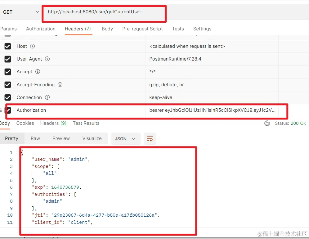 修改 /user/getCurrentUser 请求用于得到 Token 进行解析
