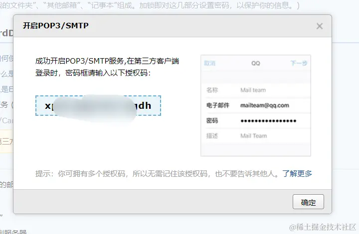 password: # 授权码,上面从 qq 邮箱官网得到的授权码