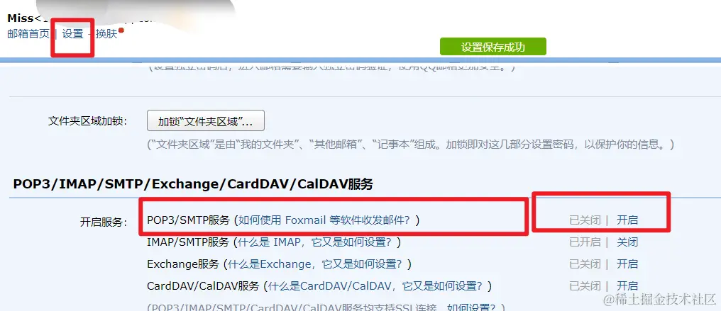 设置 -- 账户 -- POP3/IMAP/SMTP/Exchange/CardDAV/CalDAV服务