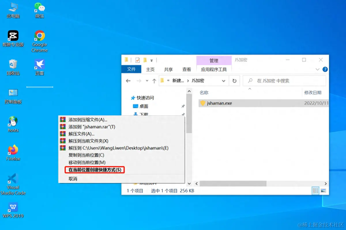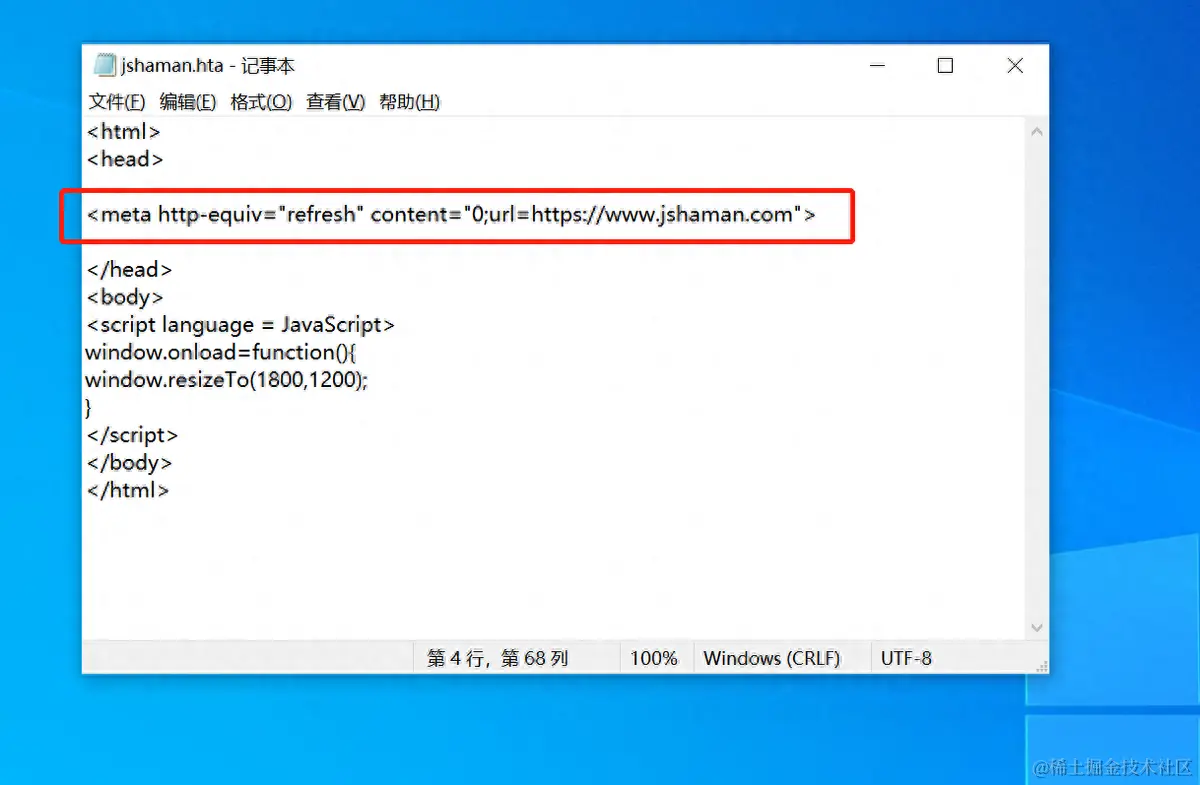 在任意位置新建一个文本文件,然后改名为:JShaman.hta。