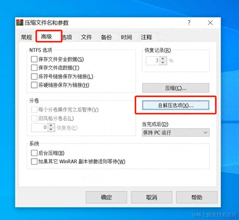 把jshaman.hta添加到压缩文件时,进行以下配置: