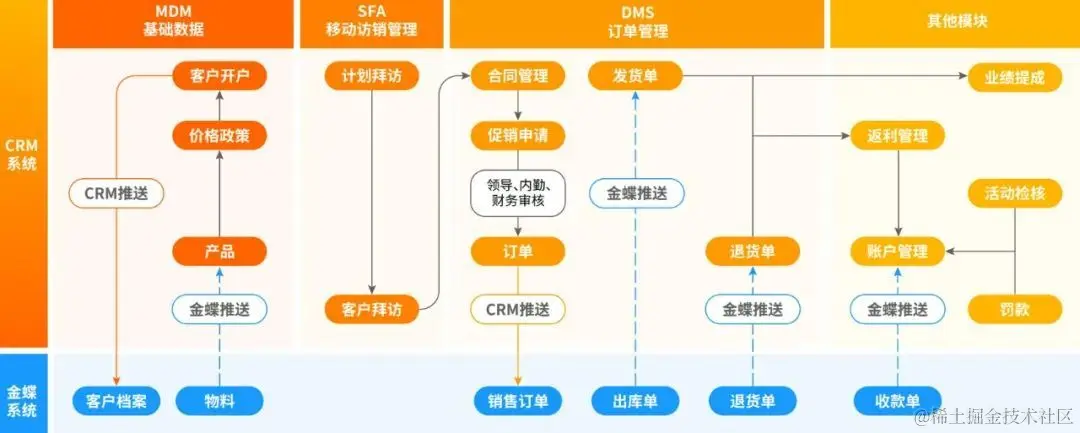 - 此前客户存在企微、小步外勤、excel、金蝶等多个系统,系统彼此之间并未连通,形成数据孤岛,不利企业做分析与决策。