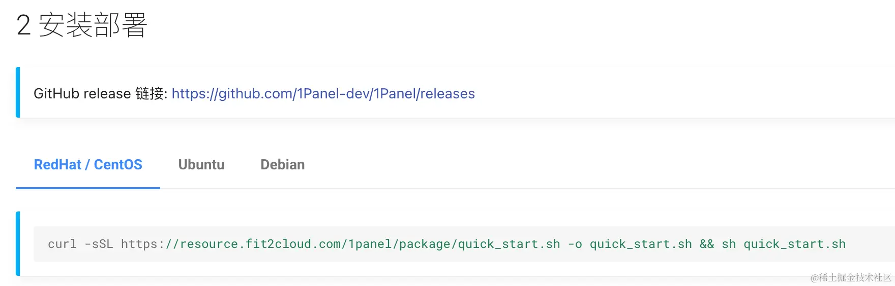 它是新一代的 Linux 服务器运维管理面板,可以帮助你高效、快捷地运维服务器,官方地址. 安装方式非常简单,选择在线安装, 如下图所示,执行对应的命令即可。