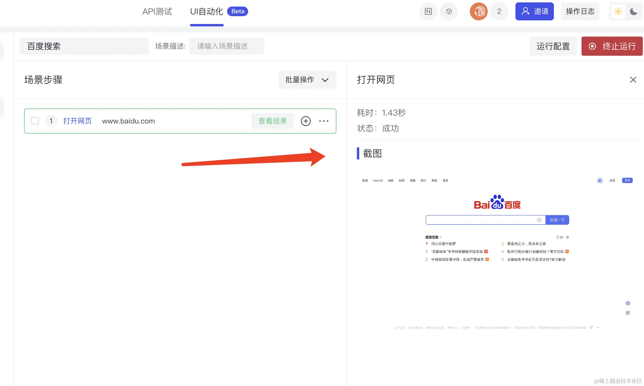 点击体验企业版进入工作台后可以点击页面上方的UI自动化 进入到测试页面