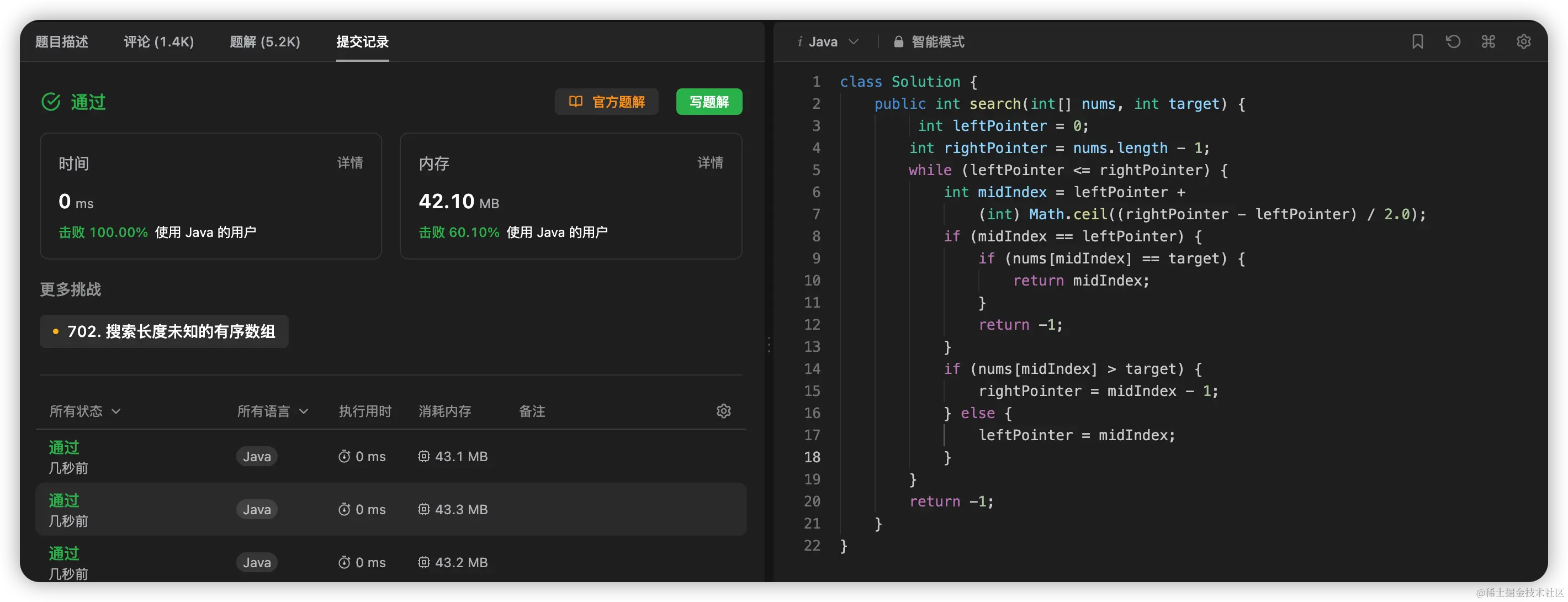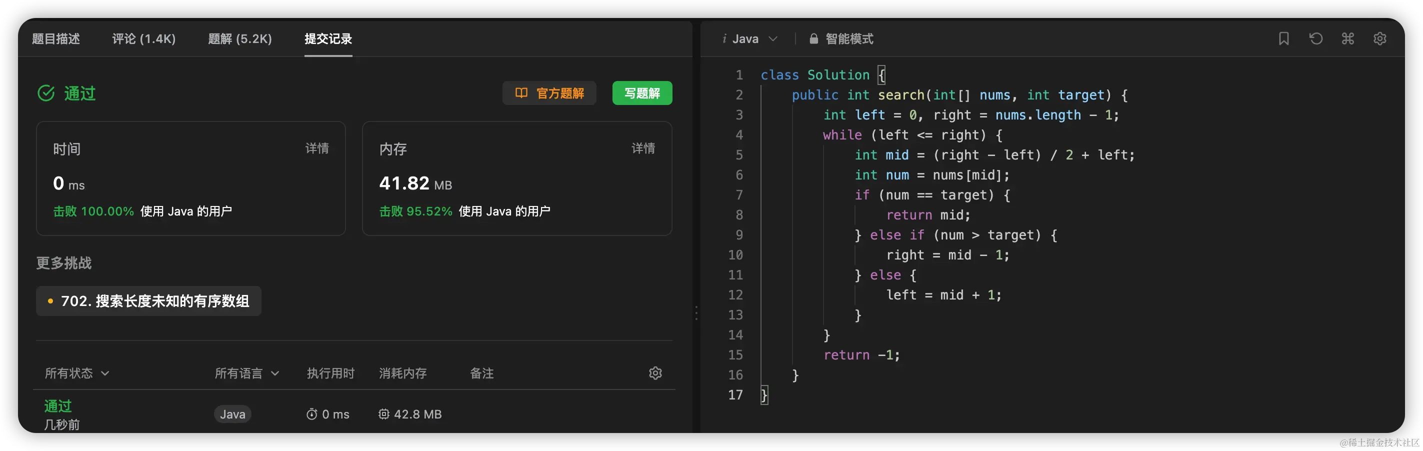 输入: nums = [-1,0,3,5,9,12], target = 2