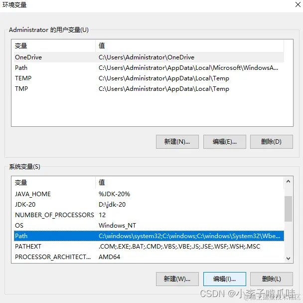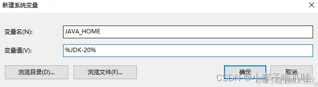 1、软件介绍 JDK全称Java SE Development kit(JDK),即java标准版开发包,是Oracle提供的一套用于开发java应用程序的开发包,它提供编译,运行java程序所需要的各种工具和资源,包括java编译器,java运行时环境,以及常用的java类库等。2,切换Windows系统,然后点击下载(初学者下载X64 Installer就可) 3,下载完成后可移动到指定文件夹进行解压(本贴选择放在D盘目录下) 4,配置JDK的环境变量,开始->设置->系统->关于->高级系统设置->环境变量(本帖以win10为例) 5,点击新建系统变量名为"JAVA_HOME",变量值为"%JDK-20%",此处可以配置多个JDK版本用于以后的开发需求,切换JDK版本时更改"JAVA_HOME"的变量值即可快速切换。 6,再次新建系统变量名为"JDK-20",变量值指定路径为"D:\jdk-20"(第三步中解压后存放jdk-20的路径) 设置成功后点击确定 7,点击新建系统变量名为"CLASSPATH",变量值为".;%JAVA_HOME%\lib\dt.jar;%JAVA_HOME%\lib\tools.jar;%JAVA_HOME%\lib;" 设置成功后点击确定 8,在系统变量中找到Path变量点击进行编辑 9,点击新建输入"%JAVA_HOME%\bin",并将其上移到最上方后确定保存(操作如下) 10,开始测试JDK20是否安装成功,使用快捷指令"Win+R"输入"cmd"打开命令窗口,输入"java",点击回车,输入"java -version",点击回车出现JDK20的版本信息则表示JDK已经安装成功,如下: 11,(有基础的可以试试)用记事本编辑一个简单的java文件进行编译输出 | |||