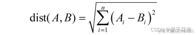 首先我们一起来了解一下欧式距离的定义:随机取出两个词向量 A 和 B,A 的词向量表示为 [A1,A2,A3…An],B的词向量表示为 [B1,B2,B3…Bn]。对于词向量A和B,其欧式距离计算公式如下: