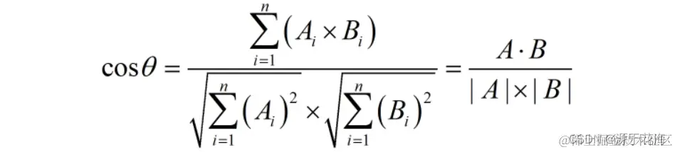 对于词向量 A 和 B,其余弦相似度计算公式如下: