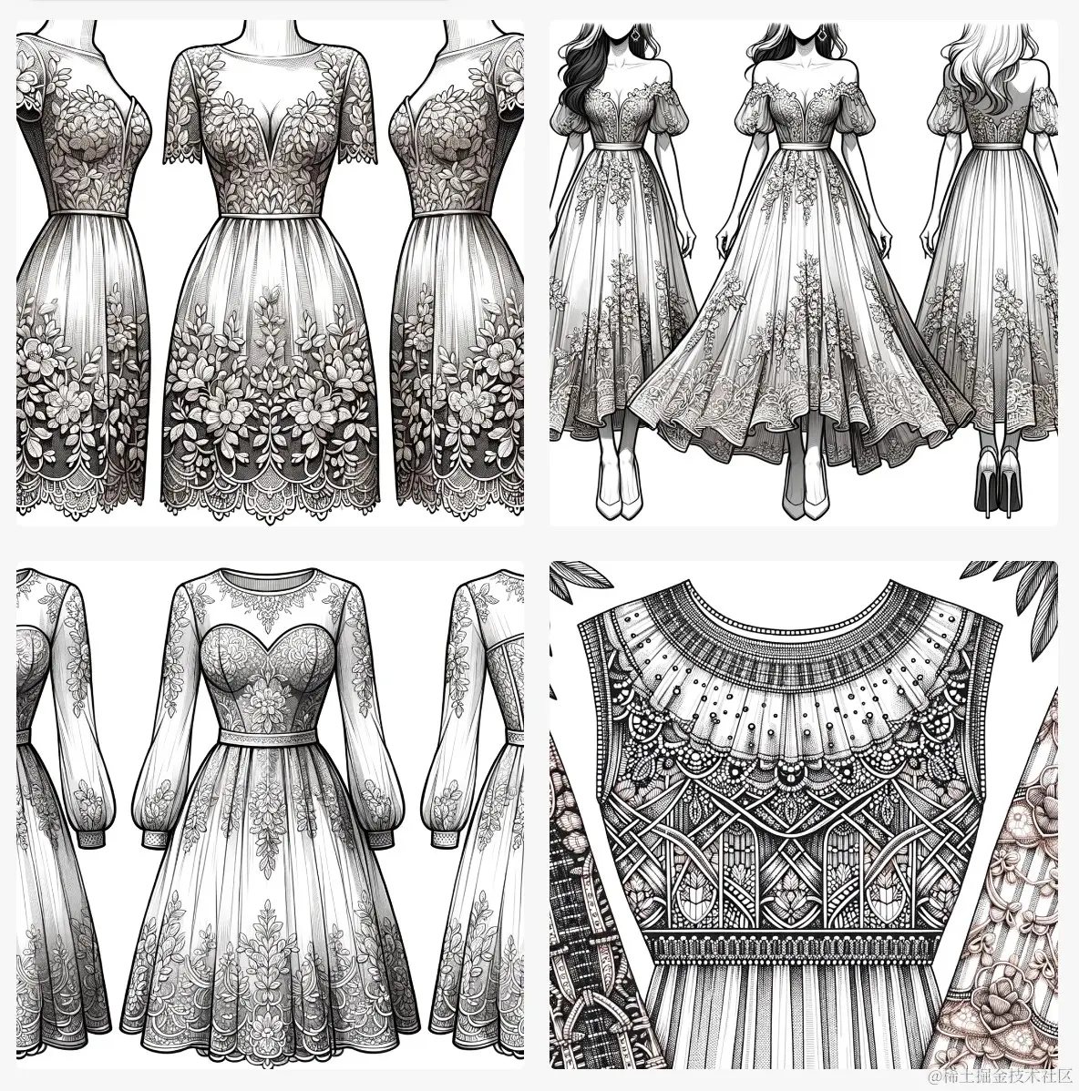 举例: Illustrations of unique apparel items for a romantic Valentine's Day date inspired by elegant lace patterns, tailored for women in their 30s. The design should highlight features such as intricate lacework and a sweetheart neckline.
