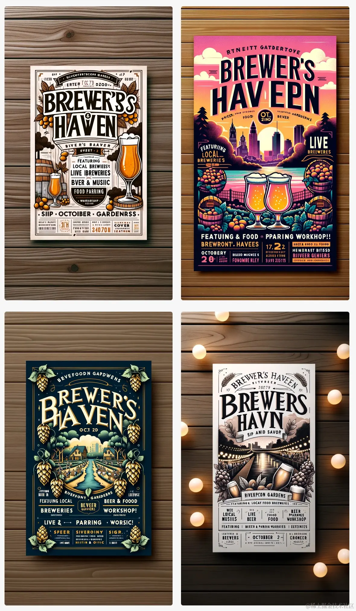 举例: Craft eye-catching flyers for a craft beer tasting event titled "Brewer's Haven," featuring local breweries, live music, and a beer and food pairing workshop. Include essential details like October 2nd, Riverfront Gardens, and Sip and savor! (Tall)