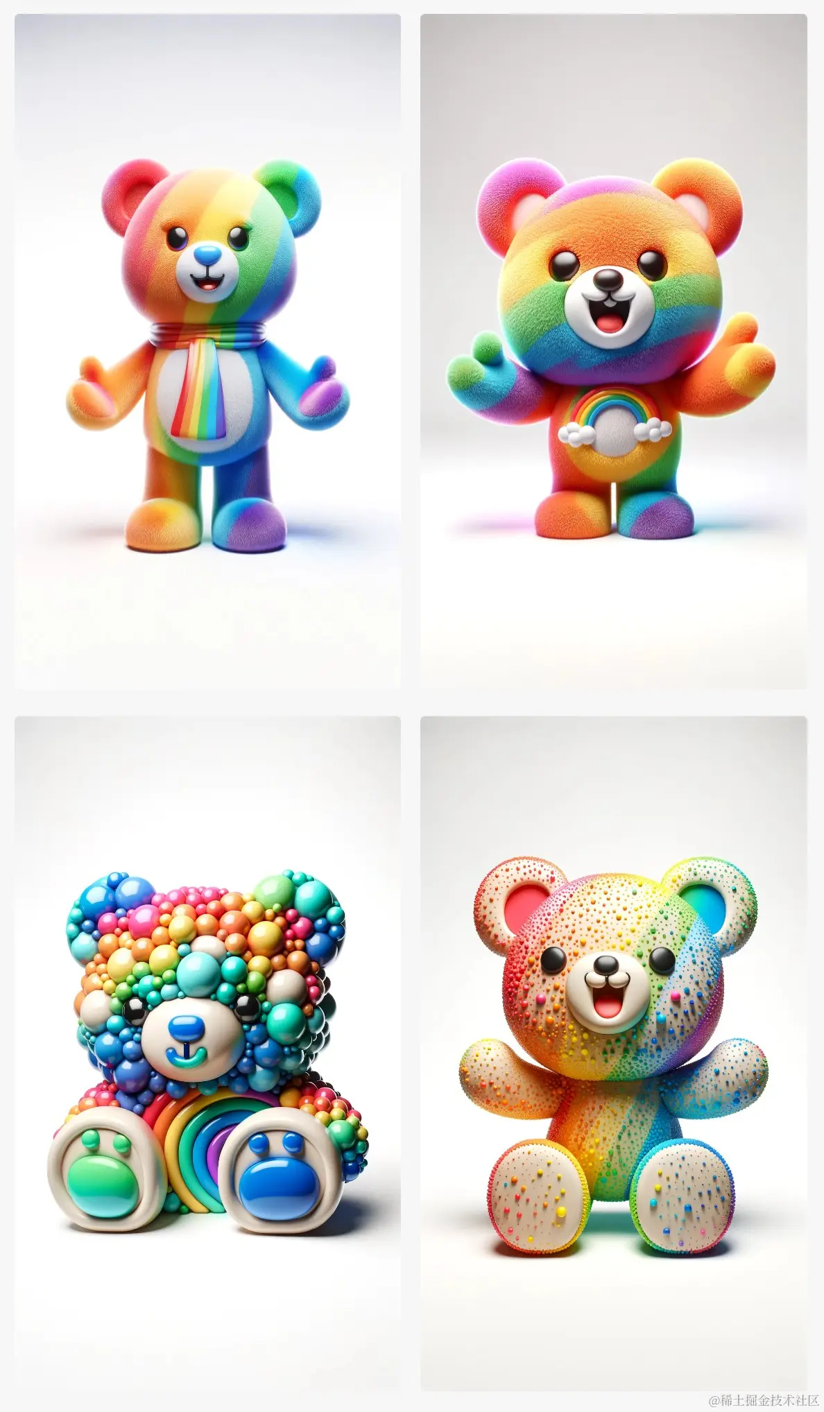 举例: Design 3D models of a mascot for a children's hospital, representing joy and comfort, with distinct features such as a teddy bear body or rainbow colors. The mascot should be set against a white background, ensuring it stands out prominently. (Tall)