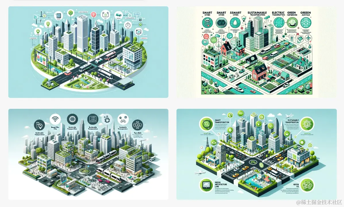 举例: Create informative infographics on the topic of urban planning, showcasing smart cities, sustainable transportation, and green architecture.