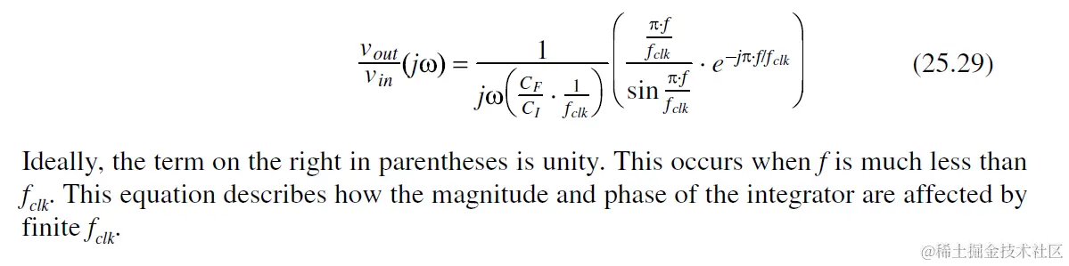 The transfer function of the switched-capacitor integrator: 注意Vin为负