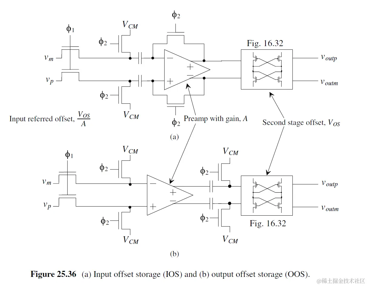 Fig25.25b 精简了管子, 另外添加了reset, 用来reset op-amp offset.