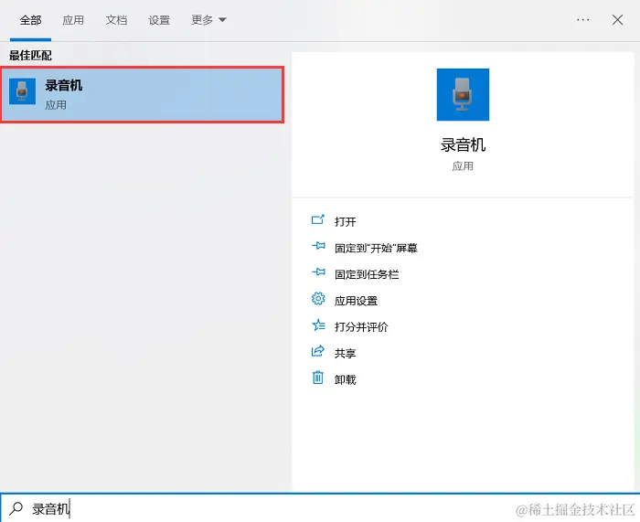 第1步:在Windows操作系统中,按下 “Win + S” ,在搜索框中键入 “录音机” 并按Enter。