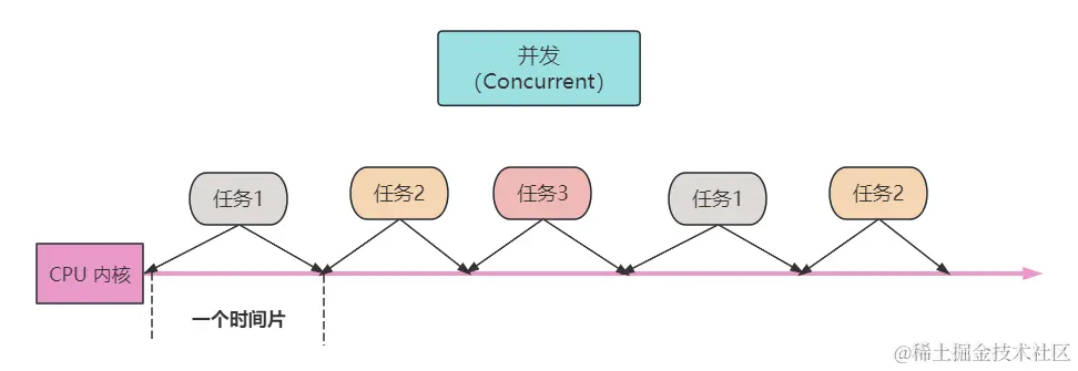 并发是指多个任务在相同的时间段内执行。在单核处理器上,多个线程之间通过时间片轮转方式切换执行,造成了并发场景。