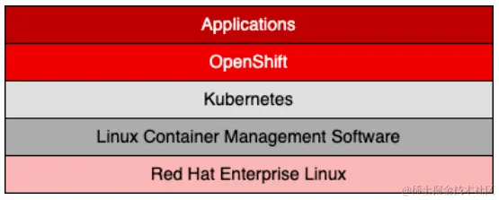 OpenShift 是一个基于 Kubernetes 的开源企业级容器应用程序开发、部署和管理平台。它由红帽开发,作为 Kubernetes 集群之上的组件层,既可以作为商业产品,也可以作为免费平台,或者既可以作为本地基础设施,也可以作为云基础设施。下图描绘了这种架构。