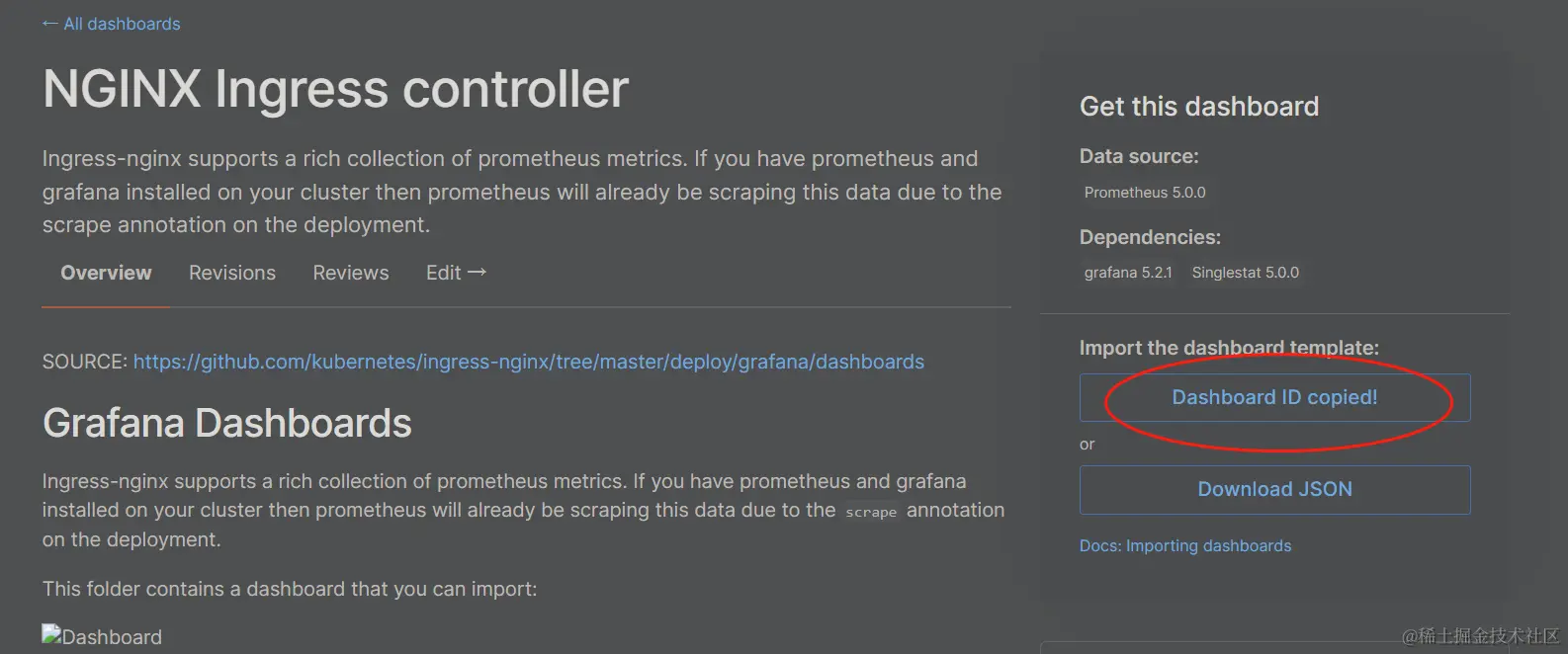 选择相应的模板,点击进入详细页面,可以复制dashboard的ID