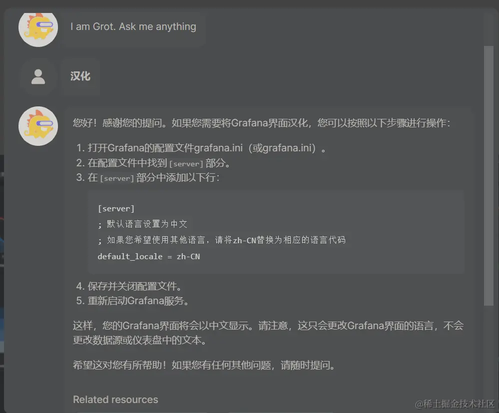 这样,您的Grafana界面将会以中文显示。请注意,这只会更改Grafana界面的语言,不会更改数据源或仪表盘中的文本。