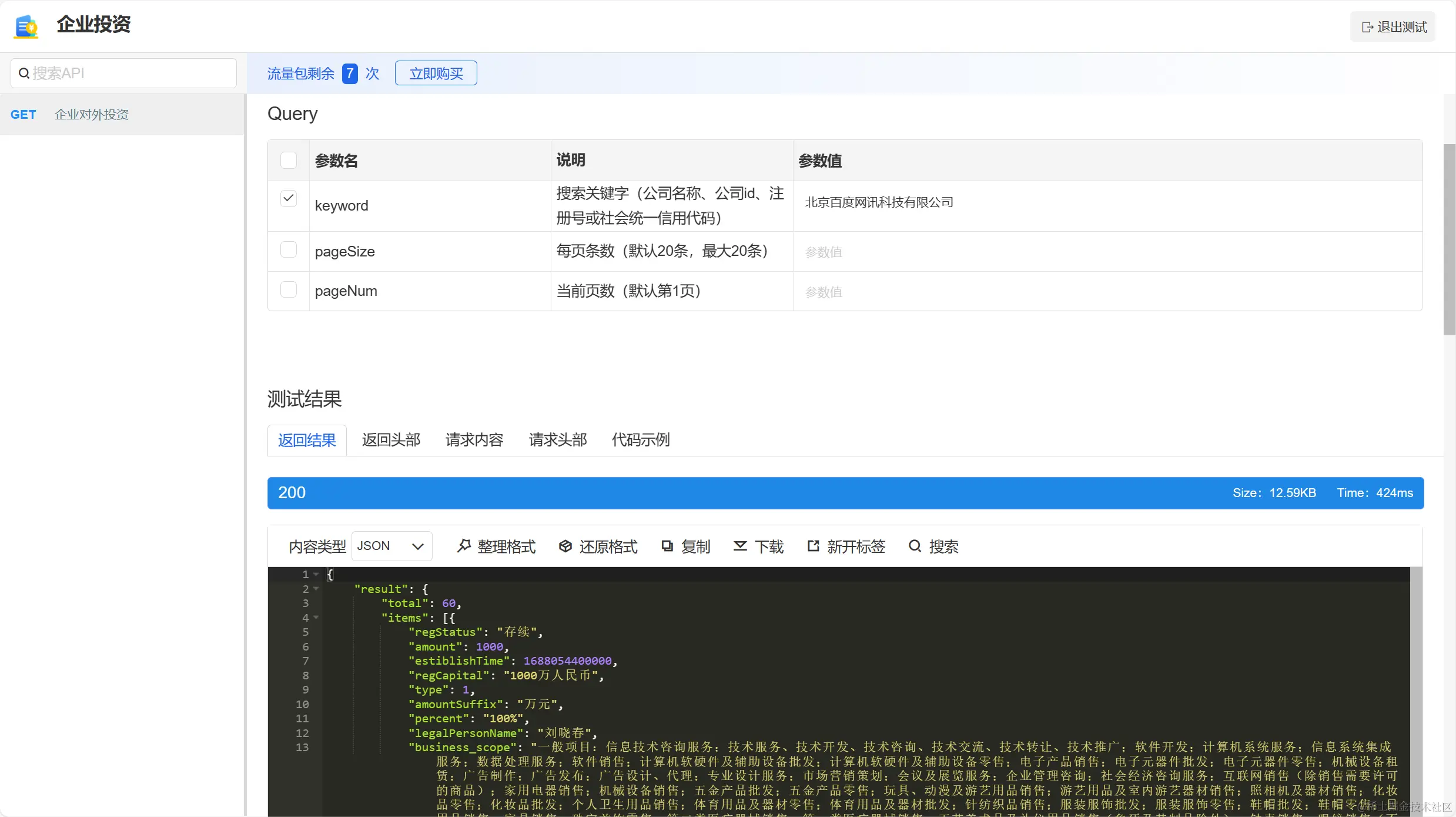 企业投资信息查询API的使用