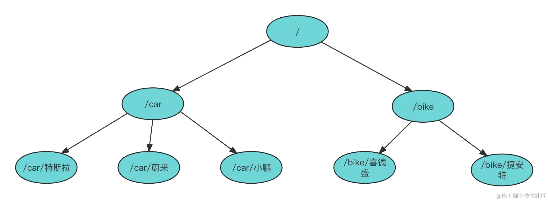 Zookeeper=文件系统+通知机制。Zookeeper提供基于类似于文件系统的目录节点树方式的数据存储,但是Zookeeper并不是用来专门存储数据的,它的作用主要是用来维护和监控你存储的数据的状态变化。通过监控这些数据状态的变化,从而可以达到基于数据的集群管理。ZooKeeper 数据模型的结构与 Unix 文件系统很类似,整体上可以看作是一棵树,每个节点称做一个ZNode。每一个ZNode默认能够存储 1MB 的数据,可见Zookeeper并不适合用于存储大量数据,只适用于存储关键的配置数据和集群数据。每个 ZNode 都可以通过其路径唯一标识。