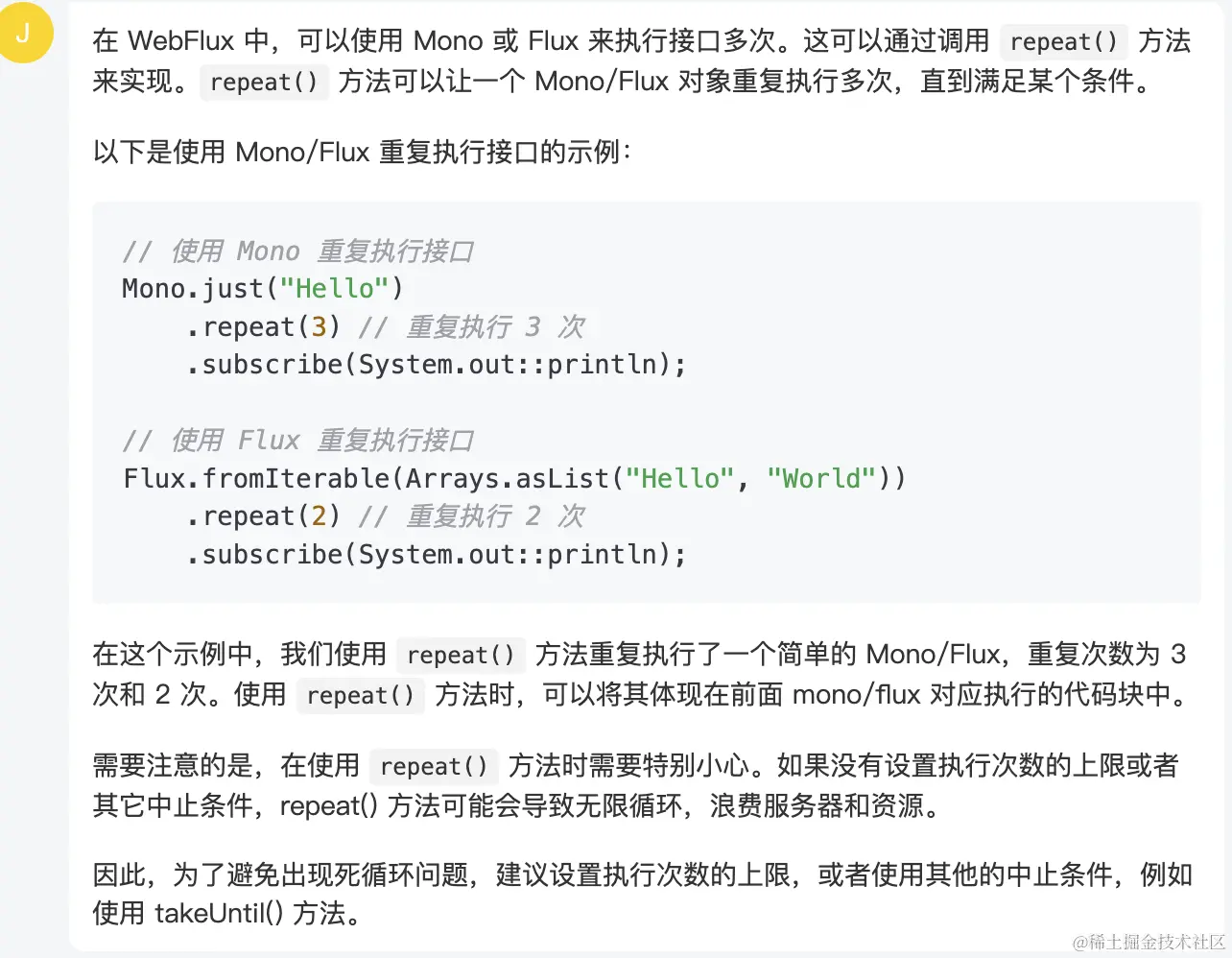 webflux 怎么让一个接口执行多次,使用Mono或者Flux实现